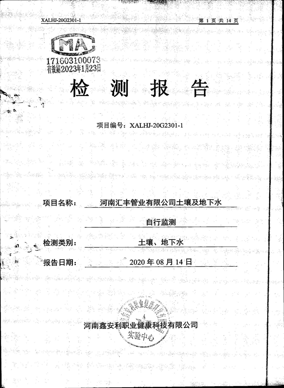 河南彙豐管業土壤及地下水監測