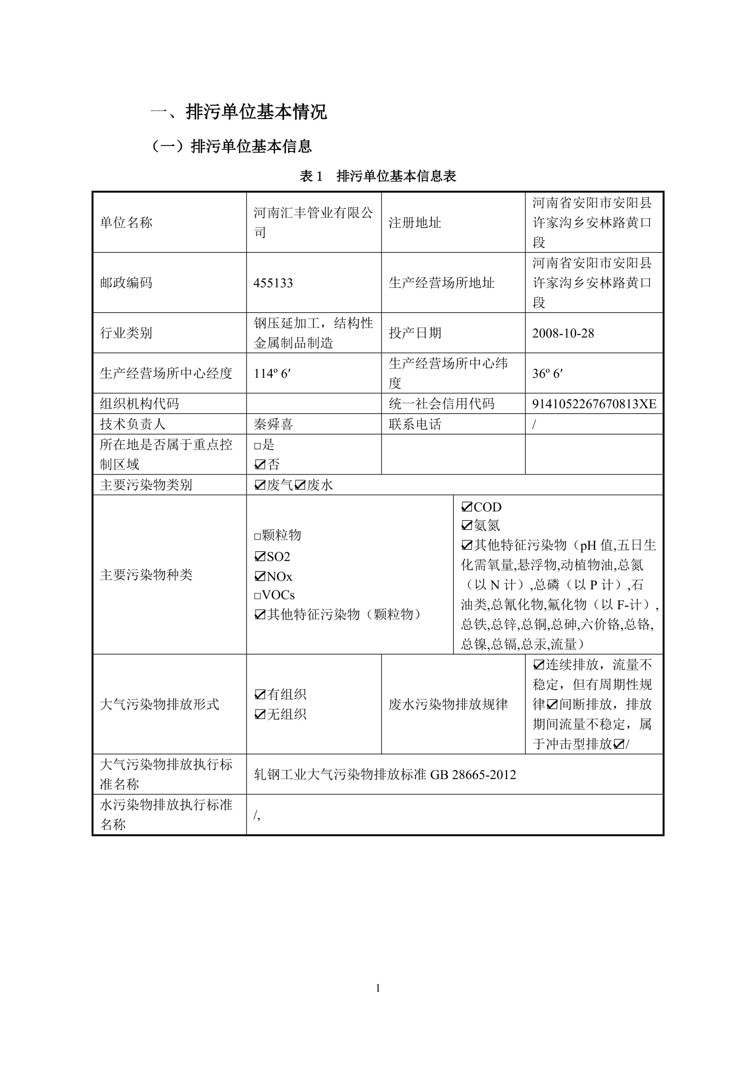 河南彙豐管業有限公司單位産生源