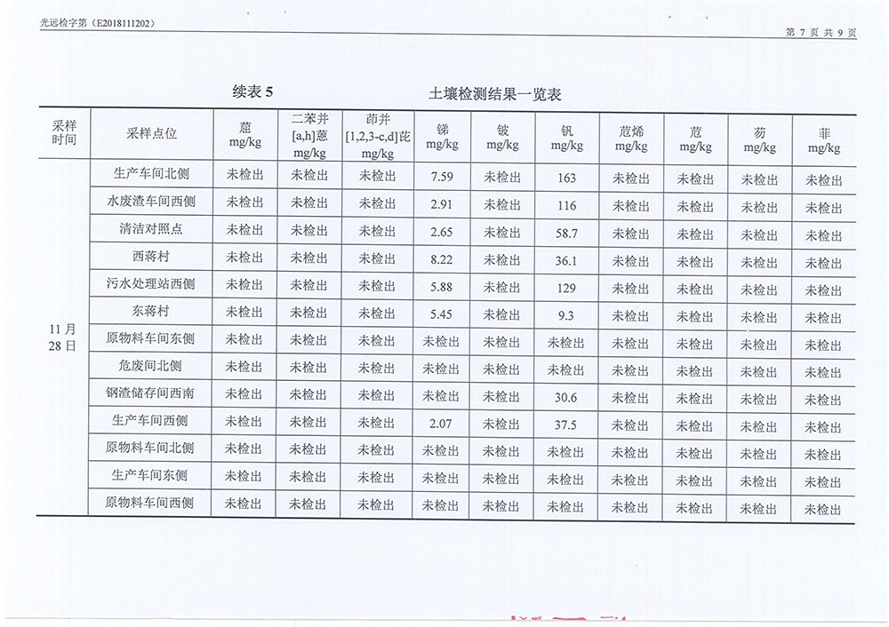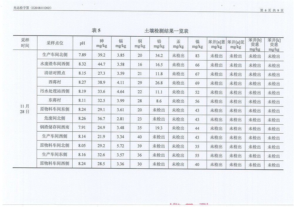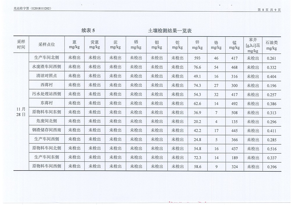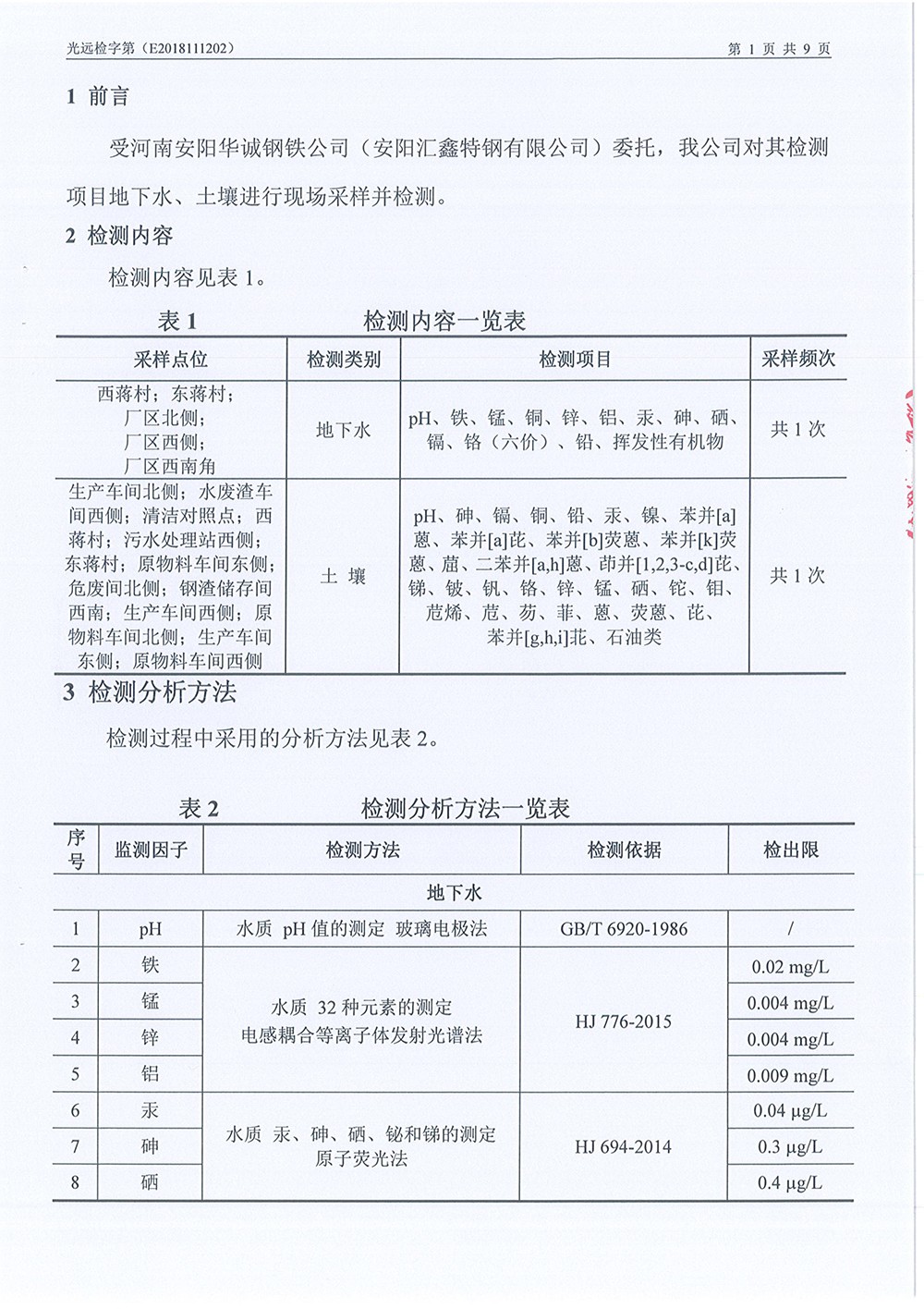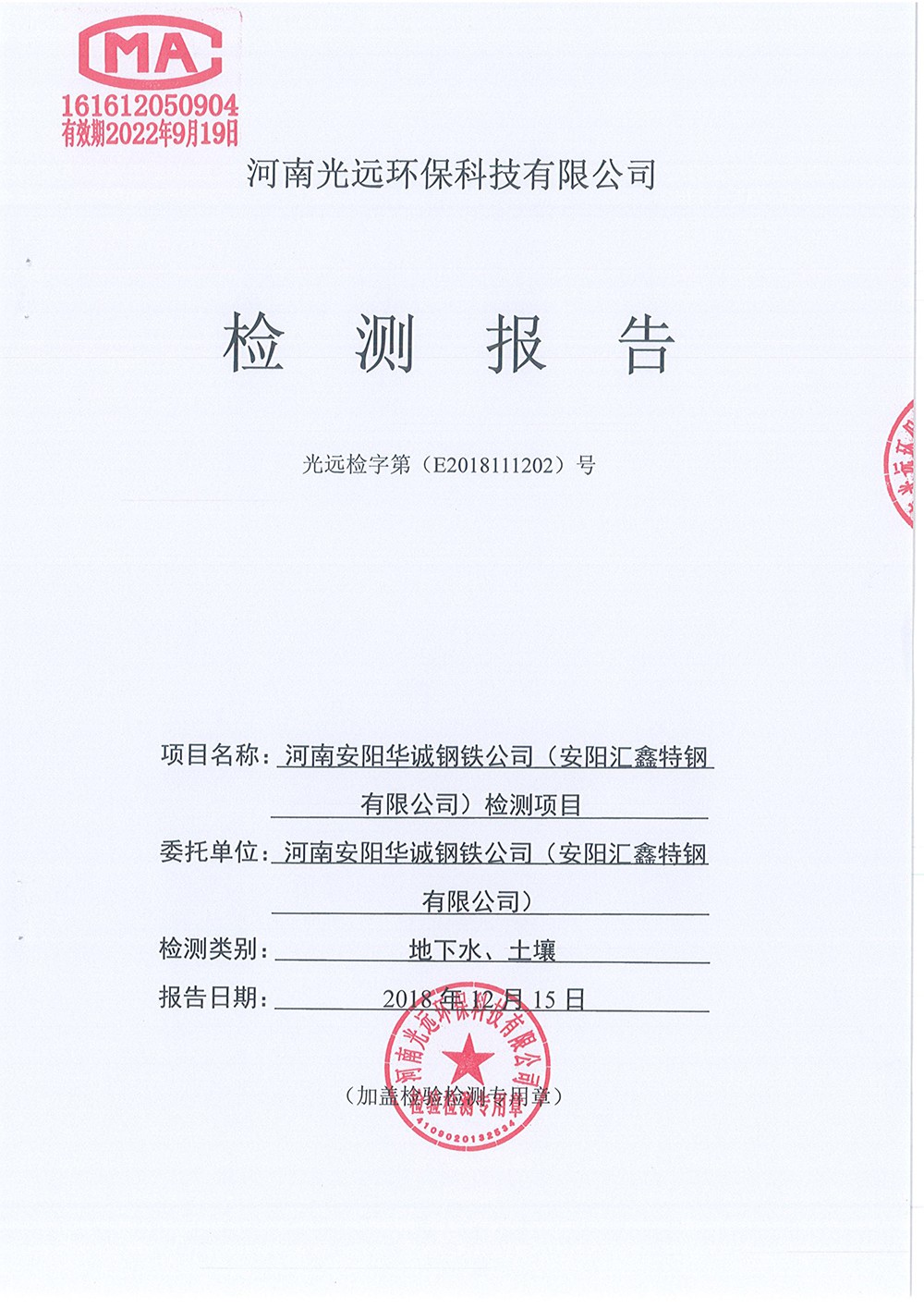 安陽彙鑫特鋼有限公司土壤檢測報告